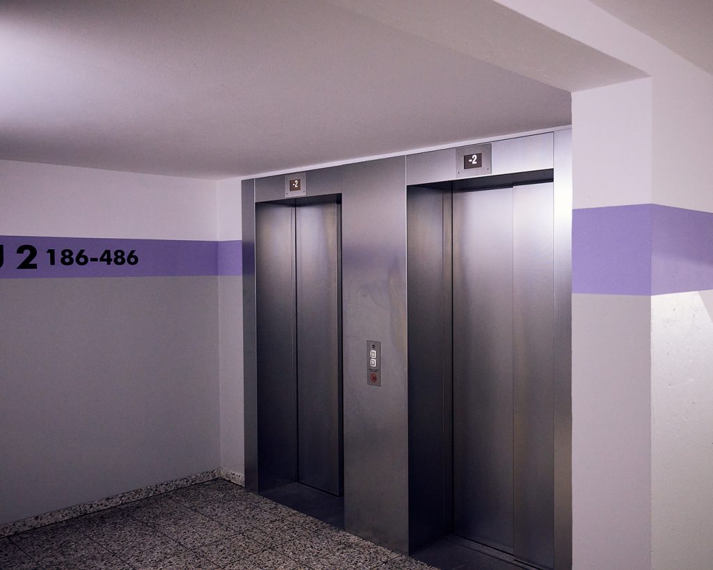 Auf den Bildern seht ihr eine zweifache Aufzugsgruppe, die heute zuverlässig und komfortabel im Einsatz ist.