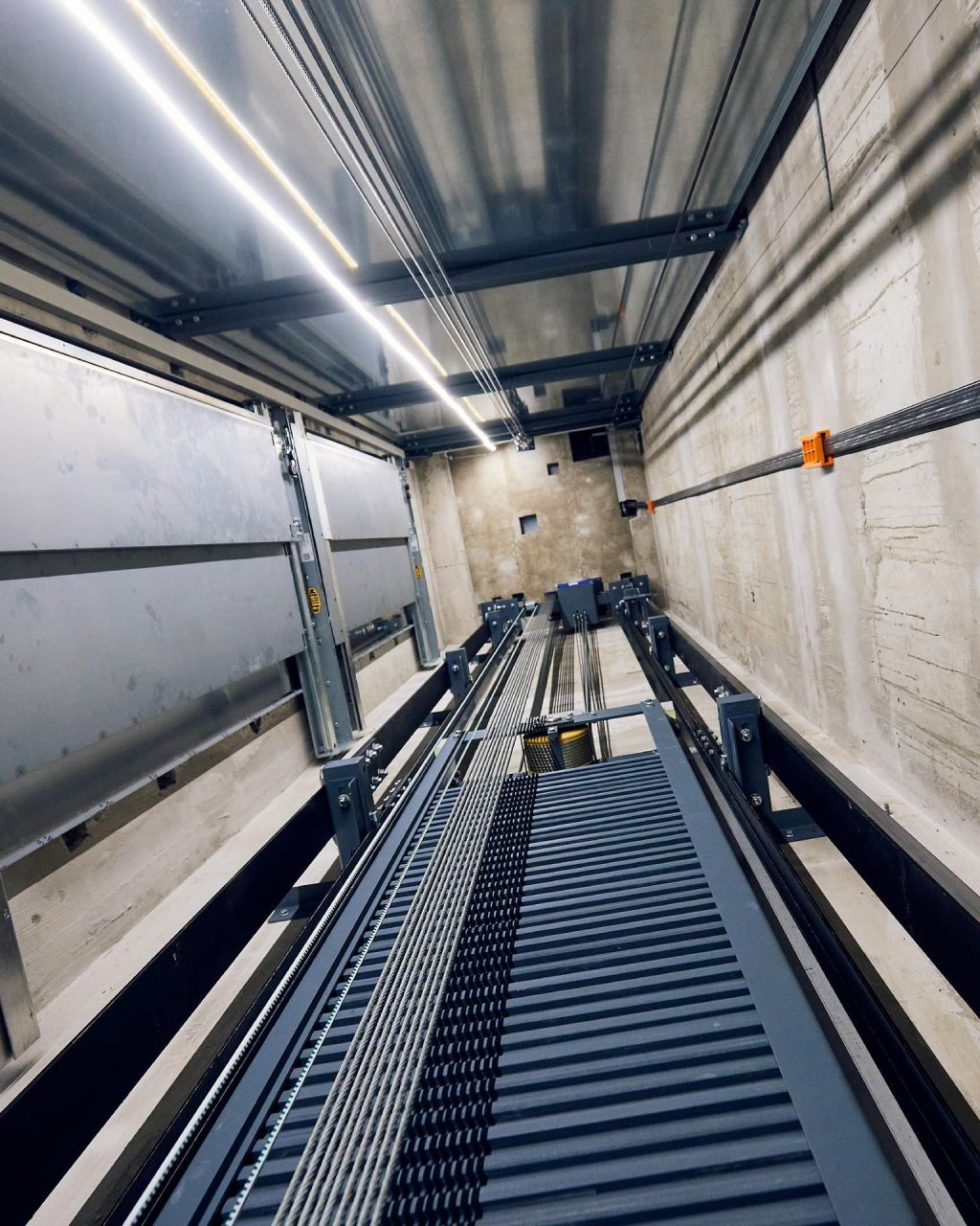 • Montage moderner, maschinenraumloser Seilaufzüge